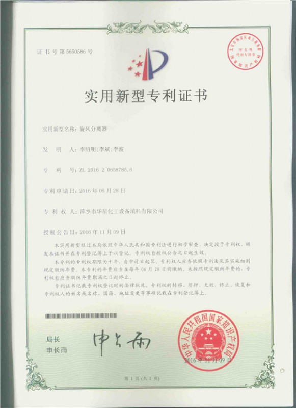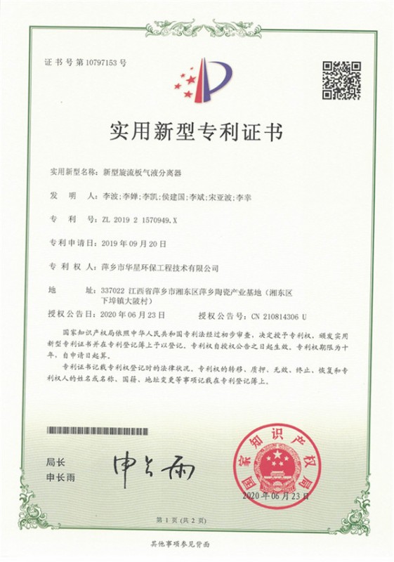 • 新型旋流板氣液分離器