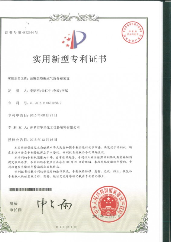 • 面覆蓋塔板式氣液分布裝置-實用